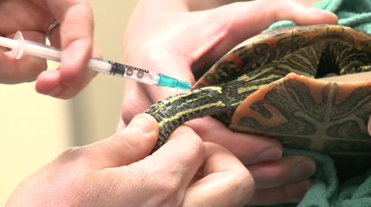в случае инфекционных поражений рептилии врач вводит в ее тело сертифицированные инъекции-антибиотики;